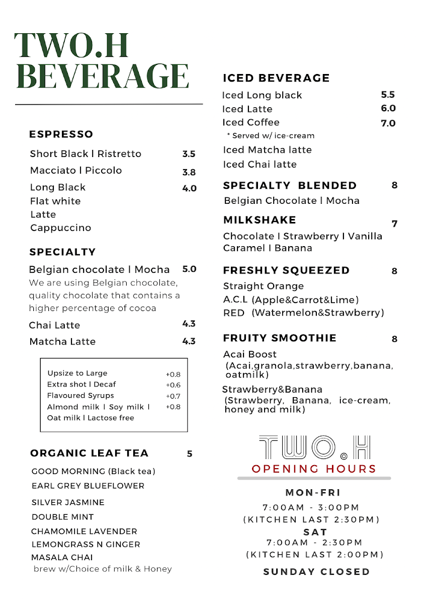 Welcome to TWO.H cafe, a charming gem nestled in Greenwich, NSW, where culinary passion meets a cozy atmosphere. The menu showcases an enticing variety of flavorful options that cater to diverse palates.